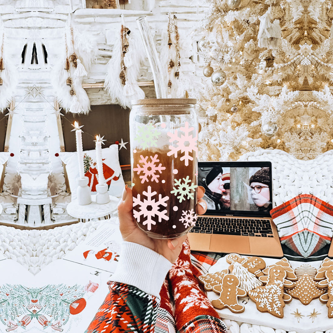 Pastel Snowflakes | Pink Christmas Glass Cups